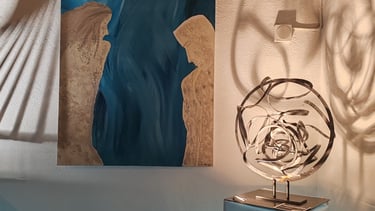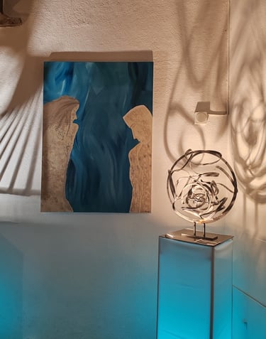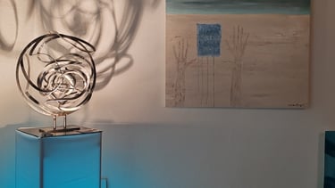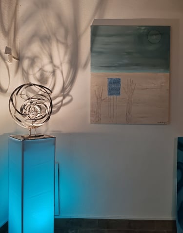 Couleurs entre terre et ciel, textures, reliefs, brillances, abstrait, figuratif, surréaliste ou suggestif, chaque œuvre artistique ouvre l'œil au delà du décor et des contours. Décor des murs, murmures des âmes.