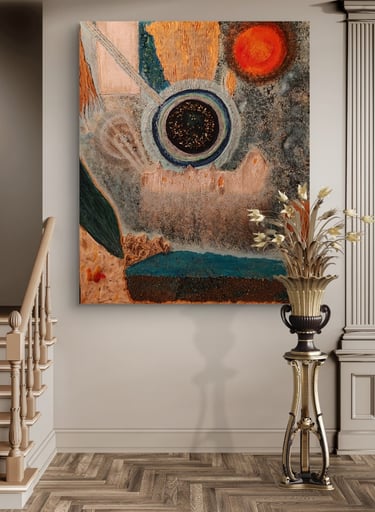 Peinture acrylique et pierres naturelles sur toile tendue 60 x 60 cm