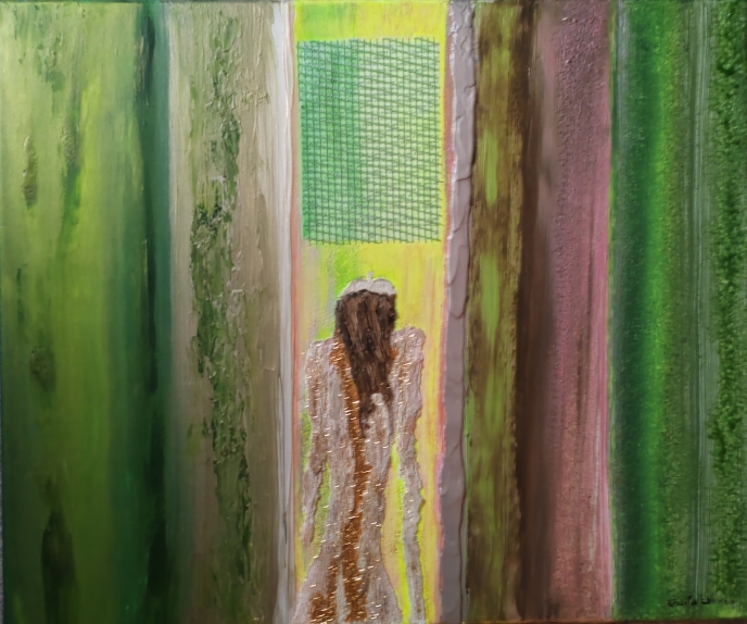 Peinture acrylique, résine et fibres translucides sur toile tendue 90 x 30 cm